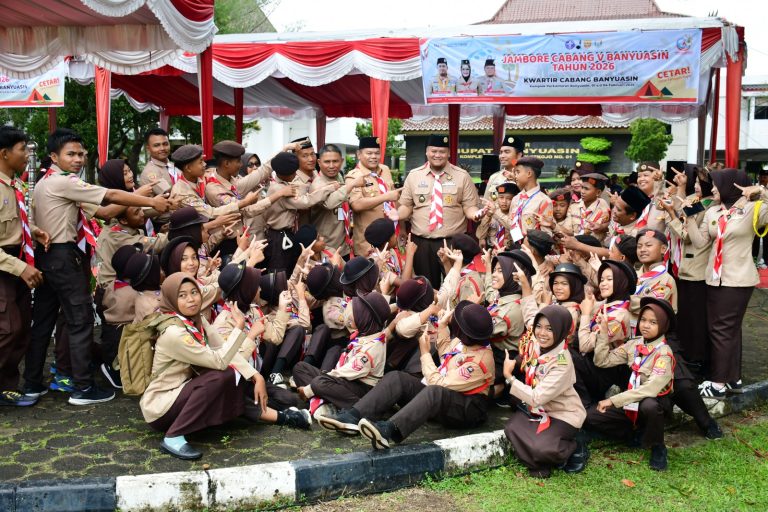 membuka Jambore Cabang (Jamcab) V Banyuasin Tahun 2026 di halaman Kantor Bupati Banyuasin, Senin (2/02)