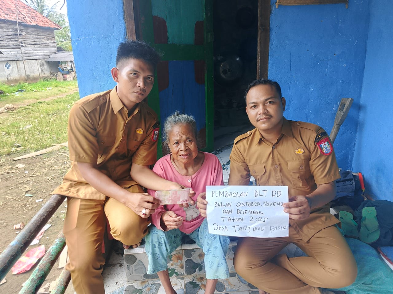RANTAU BAYUR,OS – Pemerintah Desa Tanjung Pasir menyerahkan langsung Bantuan Langsung Tunai Dana Desa (BLT-DD) tahap ahir priode bulan Oktober, November dan Desember Anggaran Tahun 2025 kepada 20 Keluarga Penerima Manfaat (KPM) secara door to door.Kamis(25/12/25).
