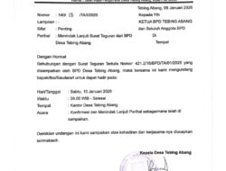 RANTAU BAYUR,OS – Terkait surat Peringatan (SP1) BPD Desa Tebing Abang No.421.2/16/BPD/TA/N0.1/2026 mengenai dugaan penyala gunakan dana Desa 2024/2025 atas beberapa Poin laporan dari AMOL (Aliansi,Mahasiswa,Ormas dan Lembaga) meminta BPD Desa Tebing Abang Kecamatan Rantau Bayur, Kabupaten Banyuasin untuk Evaluasi kinerja Kepala Desa Tebing Abang.