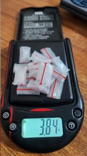 Barang bukti yang berhasil diamankan dari pelaku berupa 17 paket plastik kecil yang berisi narkotika jenis sabu. Total berat bruto sabu yang disita mencapai 3,84 gram. Sabu-sabu tersebut disimpan pelaku di dalam sebuah botol obat. Selain itu, disita pula satu unit handphone android yang diduga digunakan untuk berkomunikasi dengan pembeli.