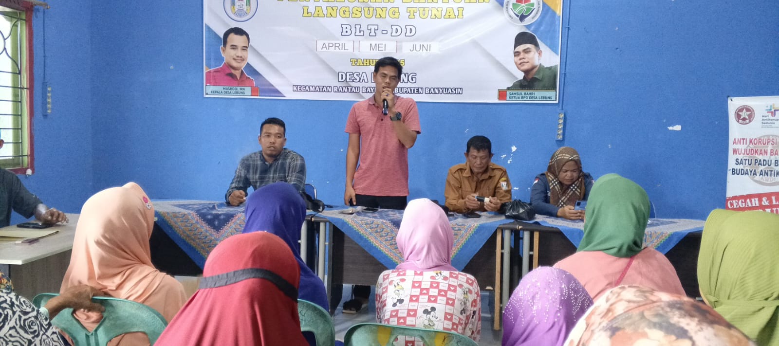 Pada kesempatan itu,Usman menyampaikan permohonan maaf dari Kepala Desa Lebung Masrodi MN karena tidak bisa menghadiri kegiatan pembagian BLT dikarenakan ada tugas yang tidak dapat diwakilkan.