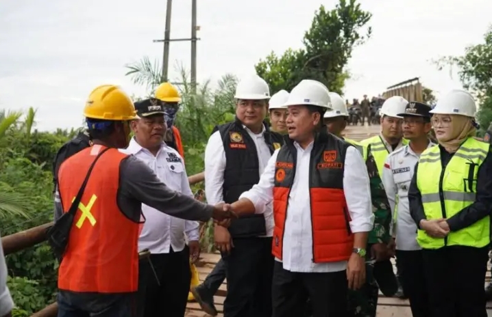 BANYUASIN,OS – Sebagai wujud nyata janji Politik Pasangan Dr. H. Askolani SH MH & Netta Indian, SP Wakil Bupati Banyuasin menunaikan salah satu dari 7 Program Prioritas Banyuasin Bangkit Adil & Sejahtera yakni Infrastruktur Bagus. Bupati Banyuasin bersama Wakil Bupati Banyuasin, didampingi sejumlah Kepala Perangkat Daerah Banyuasin (KPD) Melaunching pelaksanaan kegiatan rehab jembatan Tanah Kering (Taker) Kecamatan Pulau Rimau (Puri) Selat Penugukan (Selpen) Rabu (19/6/2025).