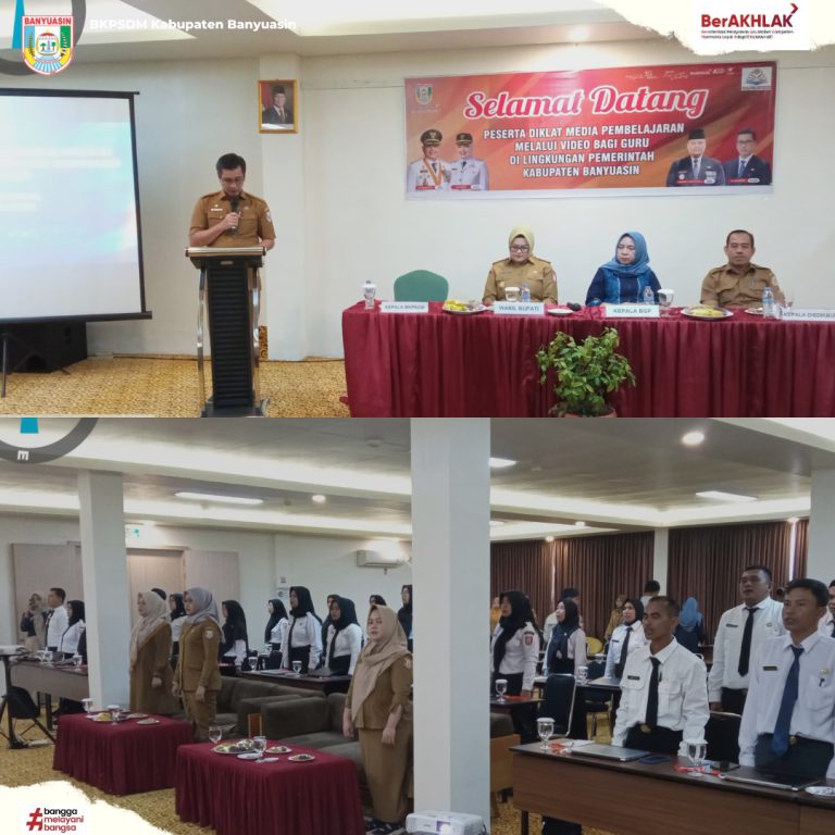 BANYUASIN,OS – Wakil Bupati Banyuasin, Netta Indian, S.P., didampingi Kepala BKPSDM, Drs. Edhi Haryono, dan Kepala Disdikbud, Aminuddin, S.Pd., S.I.P., M.M., menghadiri pembukaan Diklat Media Pembelajaran Melalui Video Bagi Guru di Lingkungan Pemerintah Kabupaten Banyuasin, Senin (07/07/2025).